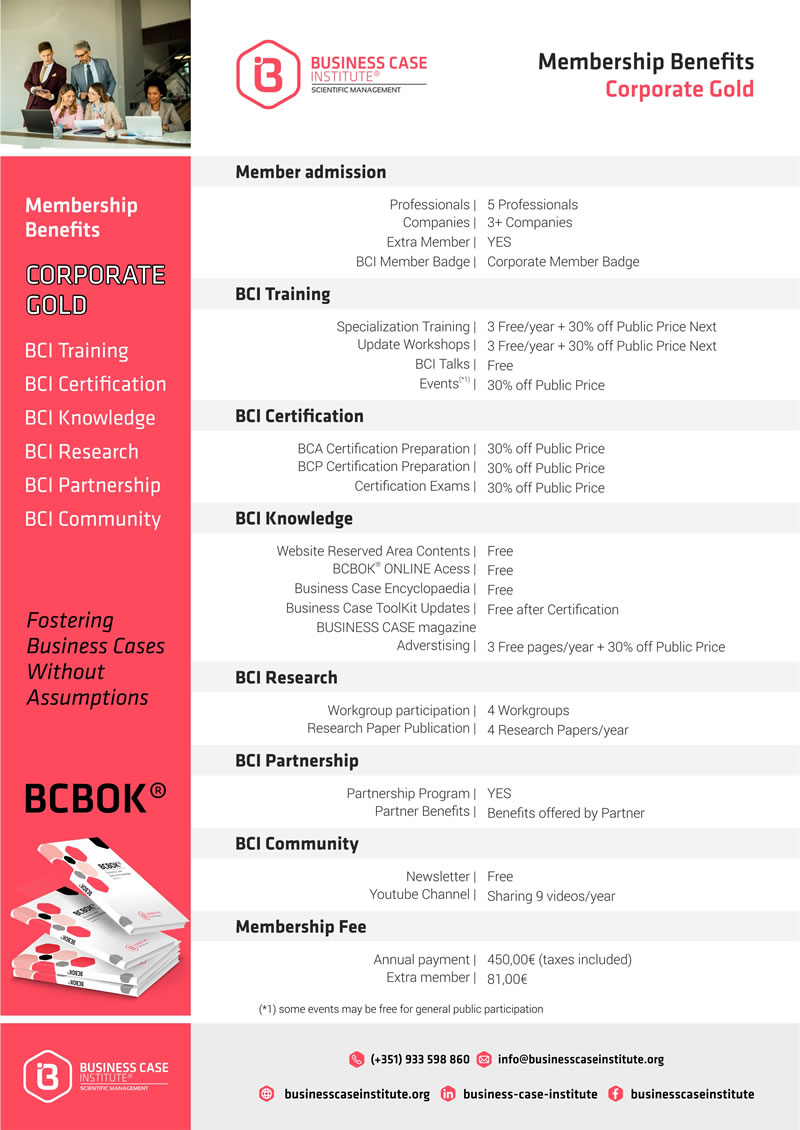 Being a member of Business Case Institute® gives you a set of benefits that you can see in the table below.